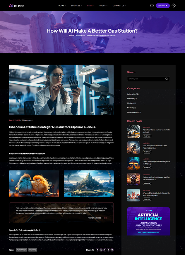 Aiglobe is an excellent theme for creating a fantastic website with great functionalities and user-friendly navigation.